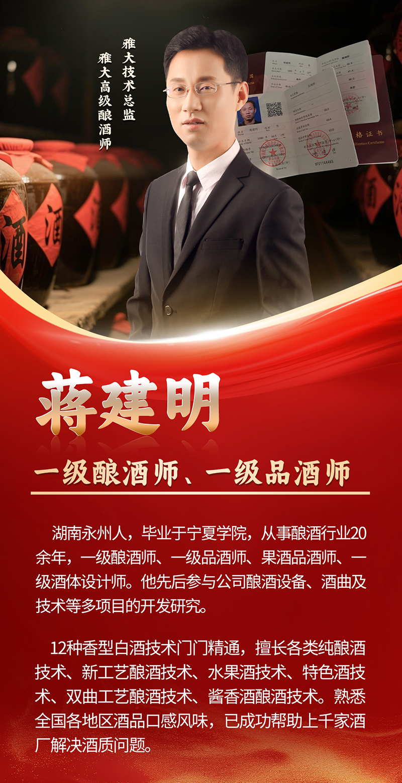 技術(shù)學(xué)習(xí),名師至關(guān)重要。在釀酒這個需要深厚積淀的領(lǐng)域,“一級釀酒師”、“一級品酒師”等國家級專業(yè)資格證書,絕非一紙空文,而是專業(yè)能力與深厚功力的權(quán)威背書!雅大導(dǎo)師團,正是兼具“持證上崗”與豐富實戰(zhàn)經(jīng)驗