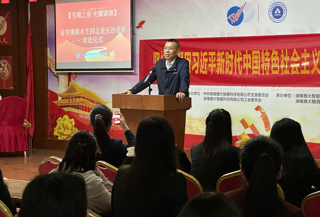 4月27日,湖南雅大智能科技有限公司隆重舉行湖南省勞動模范、設(shè)備車間主任蔣水生赴長沙參加表彰歡送儀式,公司領(lǐng)導(dǎo)班子及全體干部職工參加,公司總經(jīng)理 胡明月出席并講話。