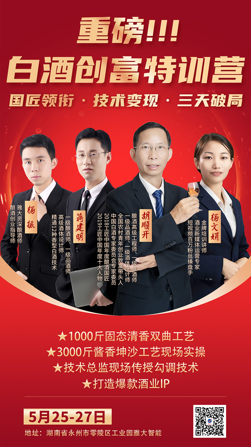 釀酒人,你缺的不是熱情,而是對(duì)的領(lǐng)路人!5月25日,雅大酒廠等你來(lái)!雅大承諾:教的都是酒廠正在用的技術(shù),不搞假把式!名額告急,趕緊聯(lián)系技術(shù)老師占位!熱線:0746-6368128!