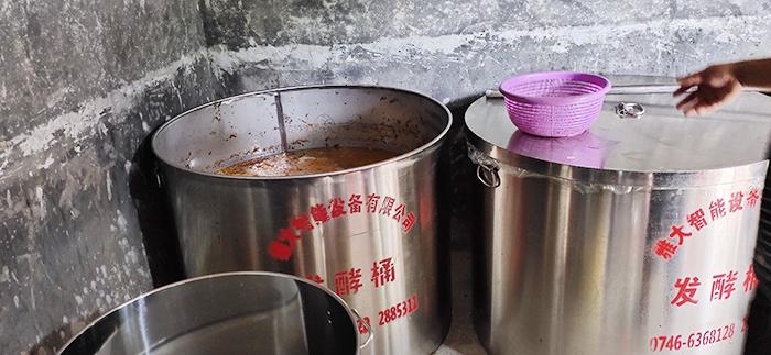 4、發(fā)酵管理。前3天半密封,每天攪拌1次,3天后全密封發(fā)酵,第6天再攪拌一次,15天左右,發(fā)酵基本完成。