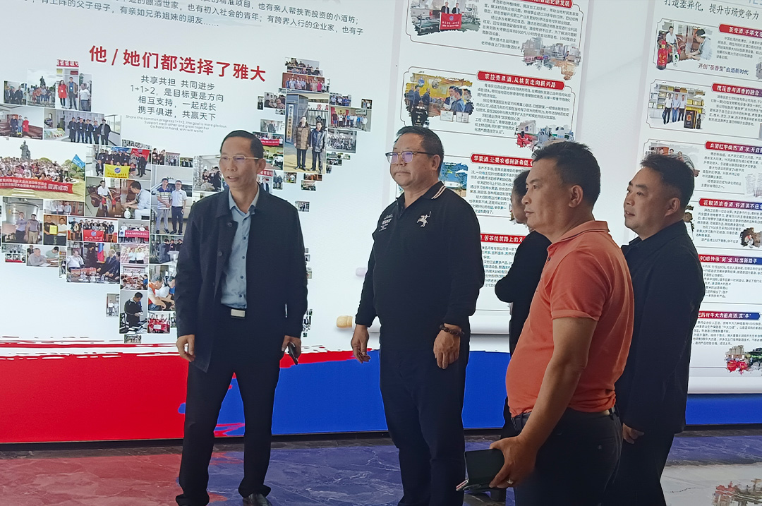 在雅大董事長胡順開、副總經(jīng)理劉思陽的陪同下,李球一行分別參觀了產(chǎn)品展廳,貯藏酒窖、酒曲生產(chǎn)車間、設(shè)備生產(chǎn)車間、釀酒廠、酒產(chǎn)品自動化灌裝車間,每到一處,胡董事長分別向領(lǐng)導(dǎo)們進(jìn)行了詳細(xì)地介紹。