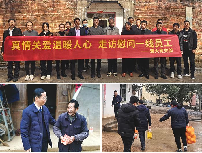 25年來,雅大公司無論任何年代、任何時期、任何形勢,都堅持以人為本,以實現員工幸福指數為最終目標。在創(chuàng)新企業(yè)文化過程中,構建了以“家”文化為核心,融合了紅色文化、奮斗文化、創(chuàng)新文化及黨、政、工、團、婦“五位一體”的企業(yè)文化建設和管理框架。雅大公司始終發(fā)揚“勵精圖治、艱苦奮斗、勇于開拓、自強不息”的企業(yè)精神,發(fā)揮“家”文化在企業(yè)發(fā)展過程中“凝聚人、激勵人、感召人”的作用,建設“拉得出、打得響、過得硬”的隊伍。以“為家人員工謀幸福,為社會國家謀發(fā)展”為初心,把每個員工智慧都凝聚起來。如每到酷暑和嚴寒季節(jié),公司為每個職工配置了電風扇、休息椅、取暖設施;高溫時段開啟了中央空調,盡可能改善職工工作條件,以“實辦事”的姿態(tài),贏得了職工的信任和好評。“心連心”關愛。公司為職工搭臺子、扶梯子、鋪路子,促進職工成長成才。公司投資 300多萬元,建起了示范性職工之家,開展各項有益活動,極大地豐富了職工的業(yè)余文化生活;定期為員工舉行積分制獎勵,為當季生日的員工舉辦生日會;走訪慰問困難職工、生產一線職工,確保會員享受應有的福利;解決職工養(yǎng)老保險、工傷保險等問題,補齊短板,滿足職工的迫切需求;為近40 名職工免費支持學歷再升,并發(fā)放獎學金。25年來,雅大公司董事長胡順開堅持把“我為職工辦實事”貫徹始終,把竭誠服務職工作為工作的出發(fā)點和落腳點,用心用情為職工辦實事、解難題,持續(xù)推進了幸福雅大建設, 提高了企業(yè)的創(chuàng)新力、形象力和核心競爭力。
