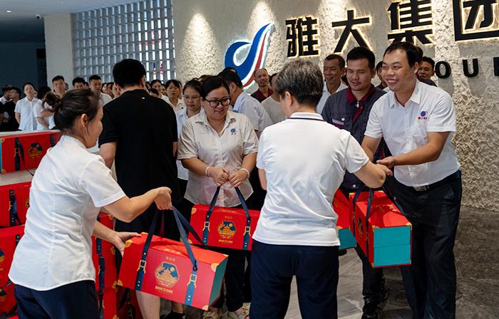 明月寄相思,中秋共團圓。為讓廣大職工在雅大大家庭充分感受到中秋節(jié)日的濃厚氛圍和公司的溫暖,公司董事長胡順開、董事曾艷春,在慰問現場將一盒盒月餅發(fā)給每一位職工,讓職工們品嘗香甜的月餅,以示情暖心暖。雅大始終秉承“以人為本”的發(fā)展理念,每當節(jié)日到來之際,公司領導心系職工進行慰問, 切實將員工關愛落到實處,增強了職工的歸屬感、獲得感和幸福感。