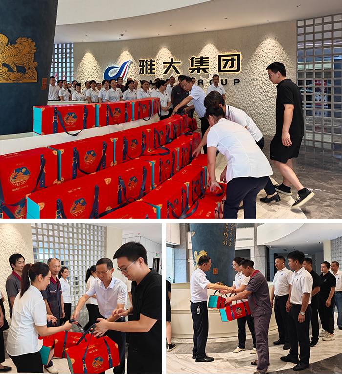 聲聲問候、濃濃祝福、句句感恩交織一起,形成一幅幅溫馨的畫面,讓雅大職工們深切體會到公司領導的關愛,進一步激發(fā)了大家昂揚向上的工作激情和滿滿的工作動力;一份份充滿愛心和人文關懷的慰問品傳遞到了每一位員工的手中,收到節(jié)日禮物與祝福的員工們無不洋溢著幸福的喜悅。
